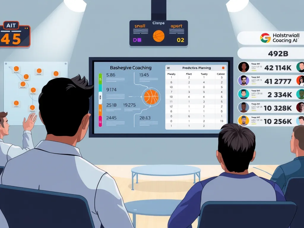 Fast-paced and highly competitive, basketball has always relied on numbers and strategy. Yet standard performance metrics often miss the full picture of a player’s strengths, weaknesses, and areas for improvement. Coaches need to bridge the gap between what is seen on the court and the potential that remains untapped. Box scores reveal outcomes, but rarely the quality of decisions that led there—how well a screen was set, whether a cut created gravity, or if a closeout arrived a split-second late. AI helps surface these hidden layers, making context as visible as results.Multiple screens displaying basketball video analysis and AI-generated strategies, coaches and analysts in a modern lab setting, focused and intense atmosphere